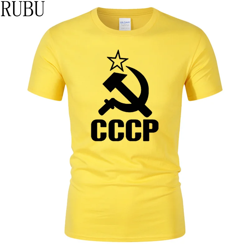RUBU Summer CCCP Russian T Shirts Men USSR Soviet Union Man Short sleeve T-shirt Moscow Russia Mens Tees Cotton O Neck Tops Tee